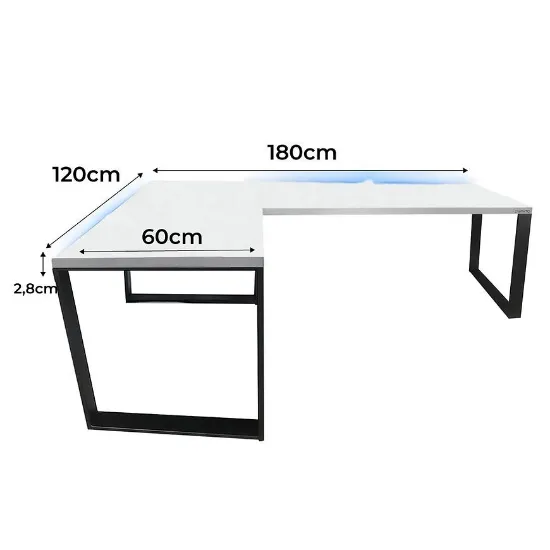 Biurko Gamingowe Narożne Loft Low Białe 180x120x2.8 Model 1