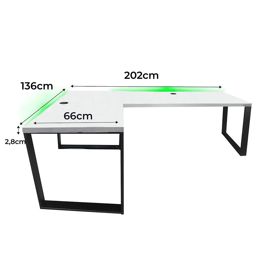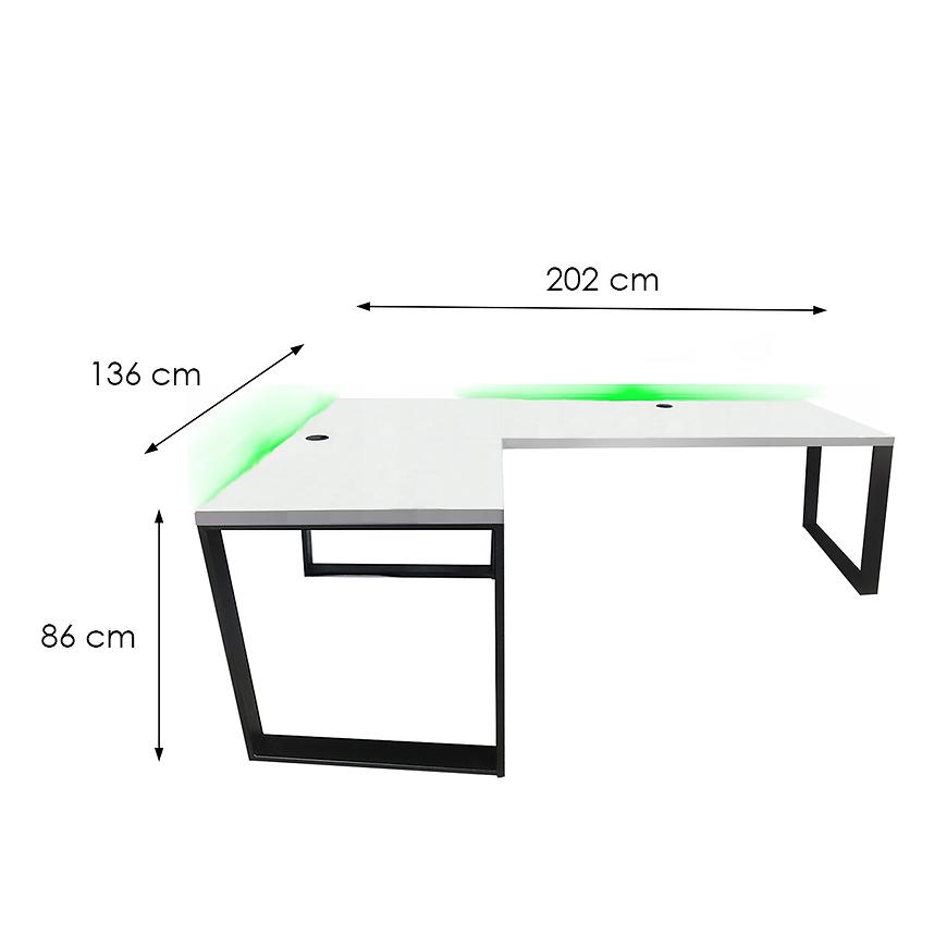 Biurko Gamingowe Narożne Loft Low Białe 202x136x2.8 Model 2