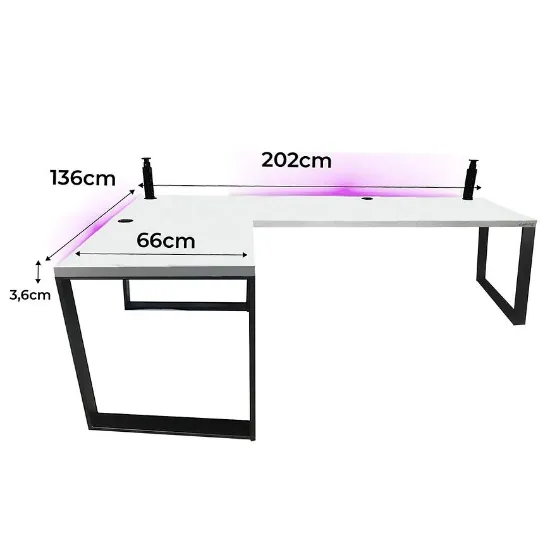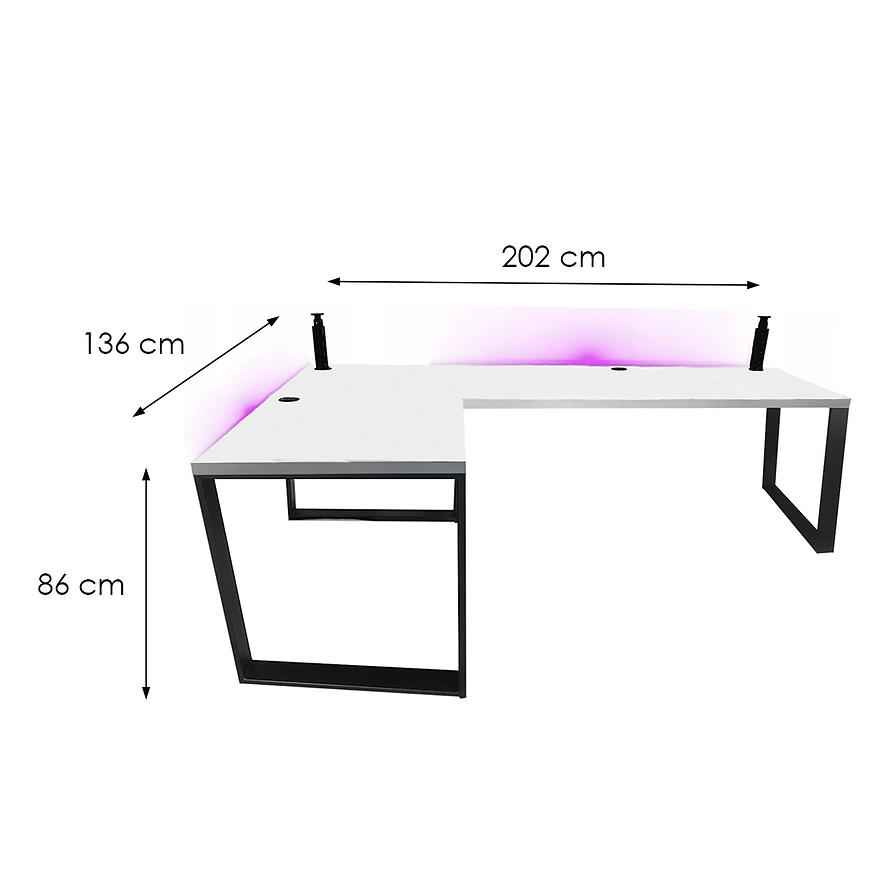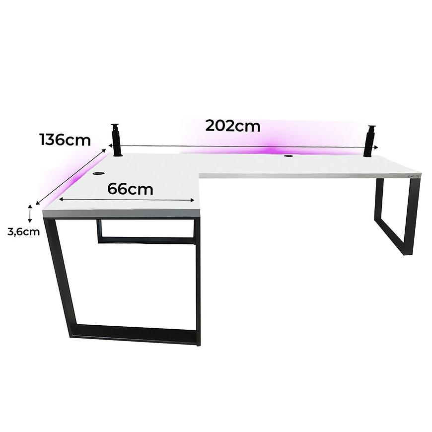 Biurko Gamingowe Narożne Loft Low Białe 202x136x3.6 Model 3