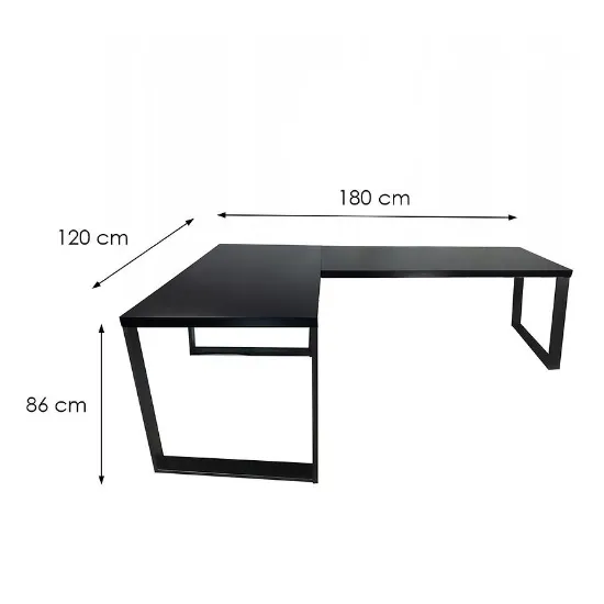 Biurko Gamingowe Narożne Loft Low Czarne 180x120x2.8 Model 0