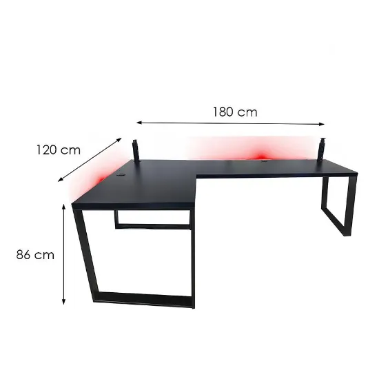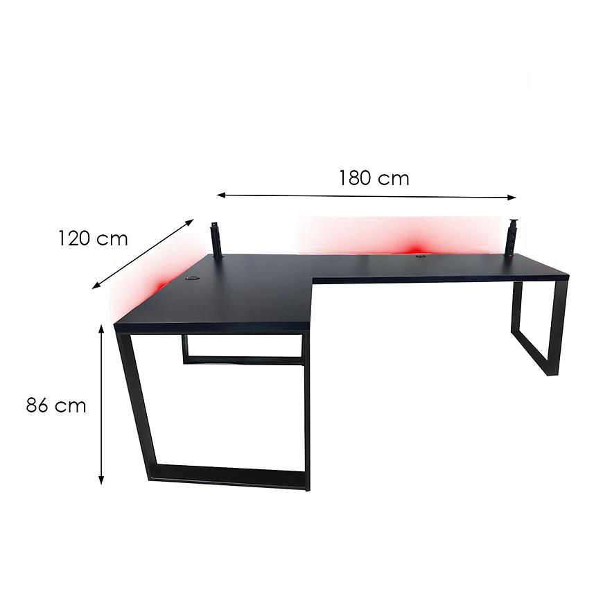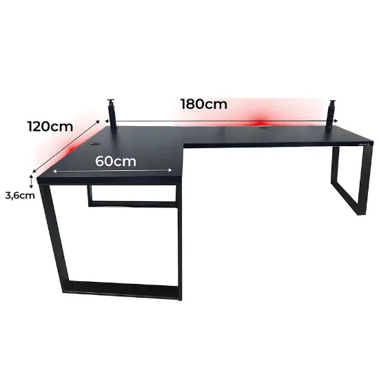 Biurko Gamingowe Narożne Loft Low Czarne 180x120x3.6 Model 3