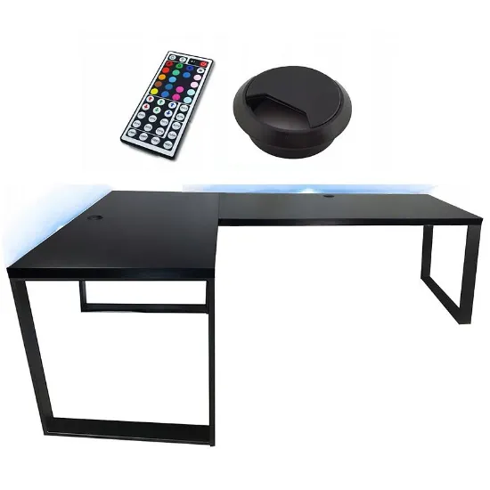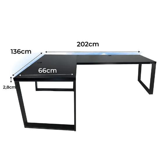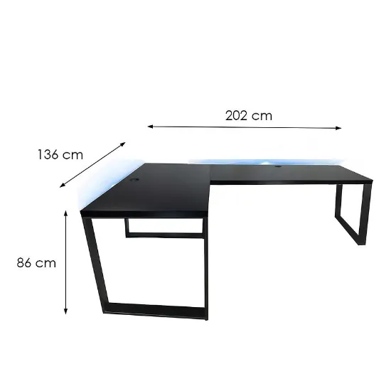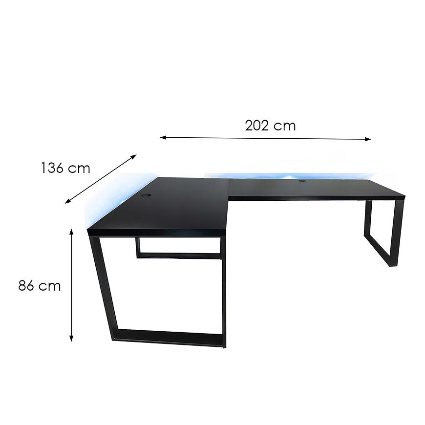 Biurko Gamingowe Narożne Loft Low Czarne 202x136x2.8 Model 2