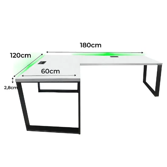 Biurko Gamingowe Narożne Loft Top Białe 180x120x2.8 Model 2