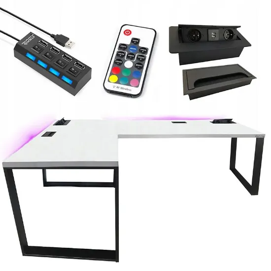 Biurko Gamingowe Narożne Loft Top Białe 180x120x3.6 Model 3