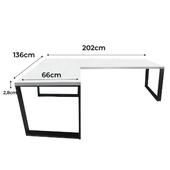 Biurko Gamingowe Narożne Loft Top Białe 202x136x2.8 Model 0