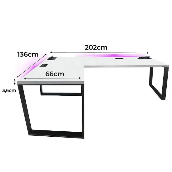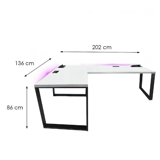 Biurko Gamingowe Narożne Loft Top Białe 202x136x3.6 Model 3