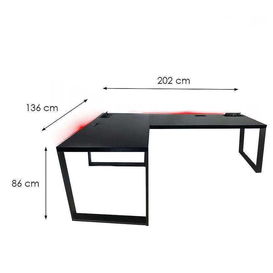 Biurko Gamingowe Narożne Loft Top Czarne 202x136x3.6 Model 3