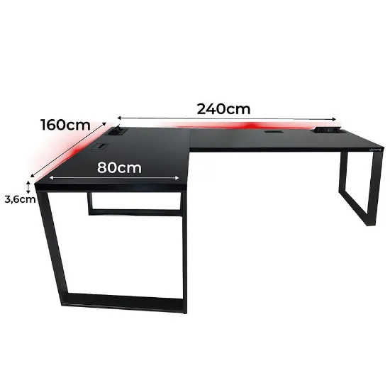 Biurko Gamingowe Narożne Loft Top Czarne 240x160x3.6 Model 3