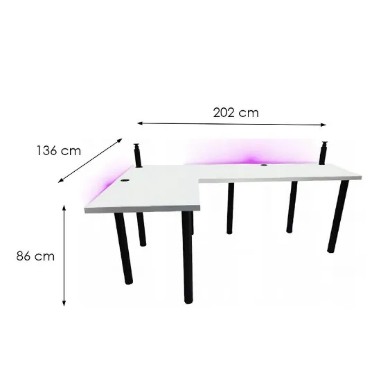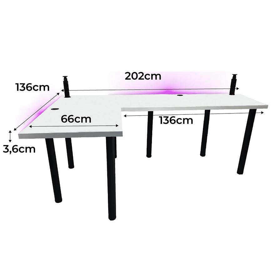 Biurko Gamingowe Narożne Low Białe 202x136x3.6 Model 3