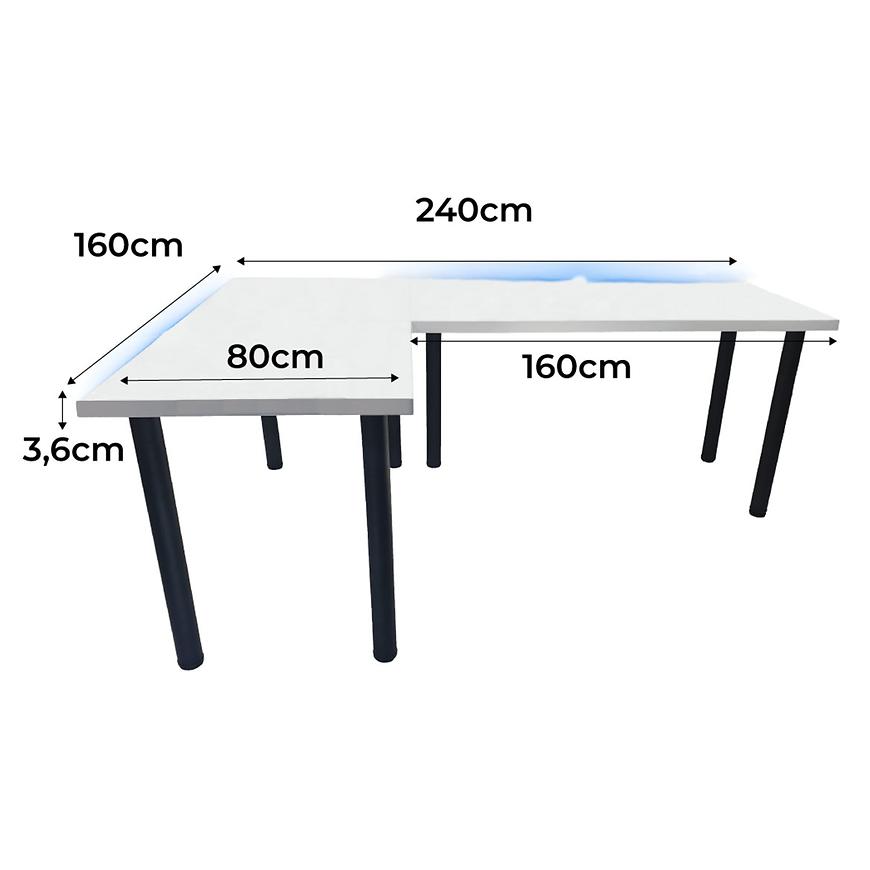 Biurko Gamingowe Narożne Low Białe 240x160x3.6 Model 0