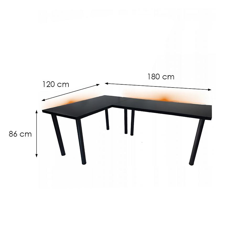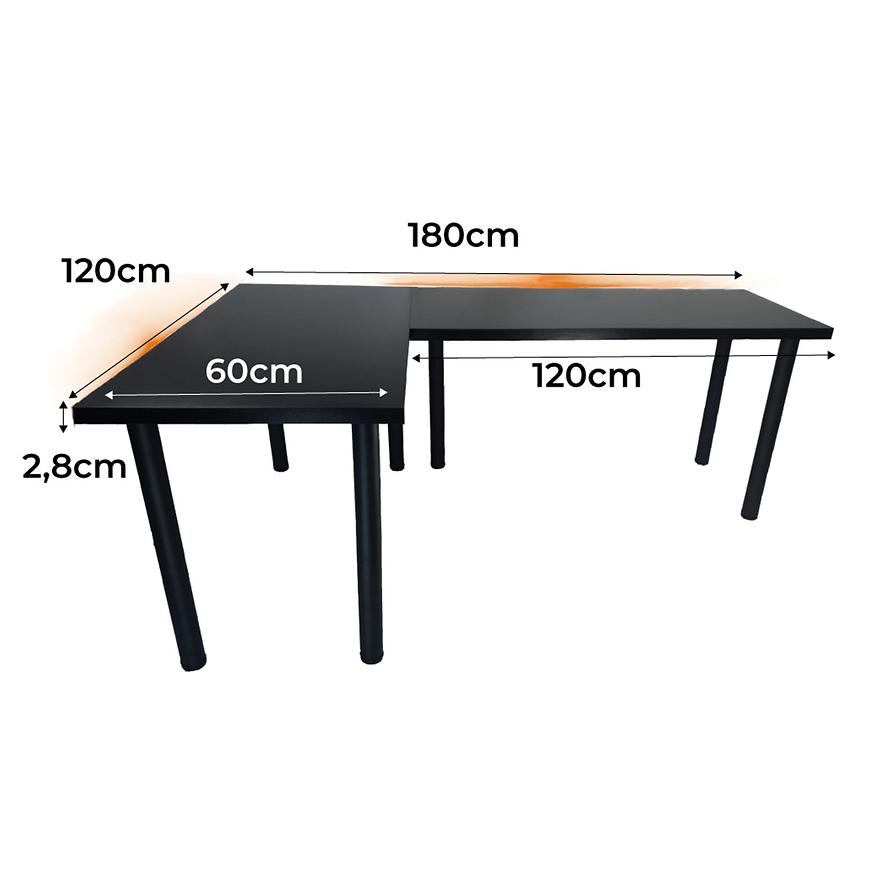 Biurko Gamingowe Narożne Low Czarne 180x120x2.8 Model 1