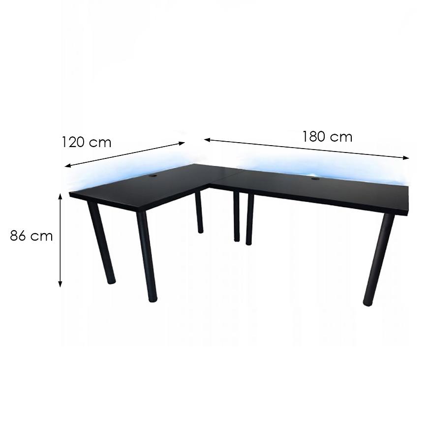 Biurko Gamingowe Narożne Low Czarne 180x120x2.8 Model 2