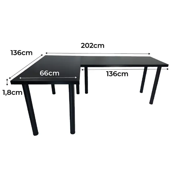 Biurko Gamingowe Narożne Low Czarne 202x136x1.8 Model 0