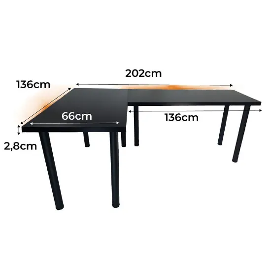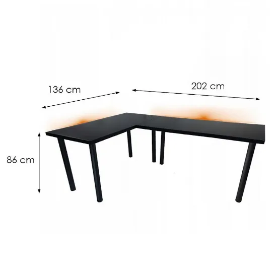 Biurko Gamingowe Narożne Low Czarne 202x136x2.8 Model 1