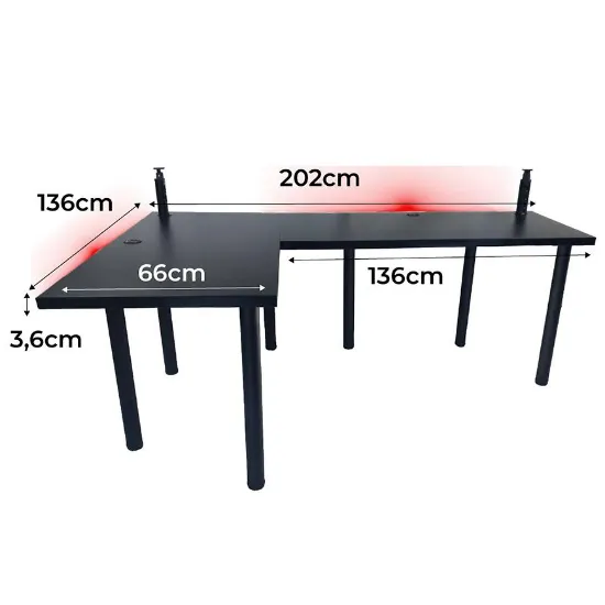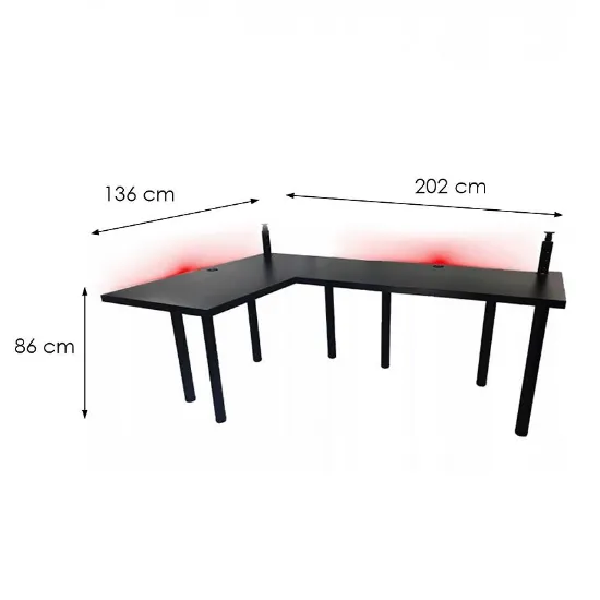 Biurko Gamingowe Narożne Low Czarne 202x136x3.6 Model 3