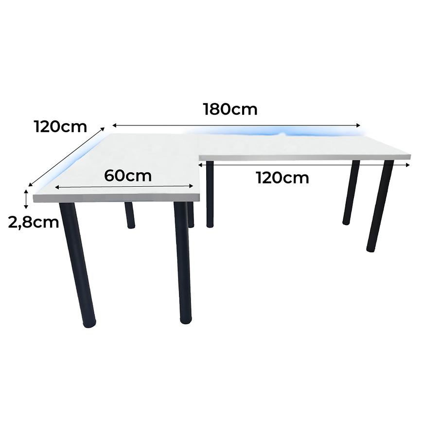 Biurko Gamingowe Narożne Top Białe 180x120x2.8 Model 1