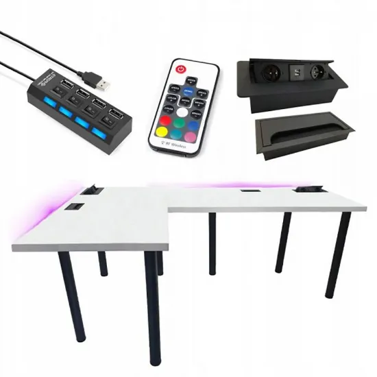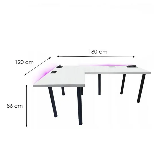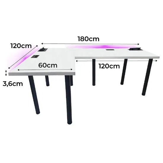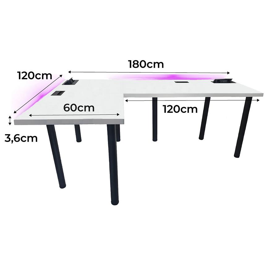 Biurko Gamingowe Narożne Top Białe 180x120x3.6 Model 3