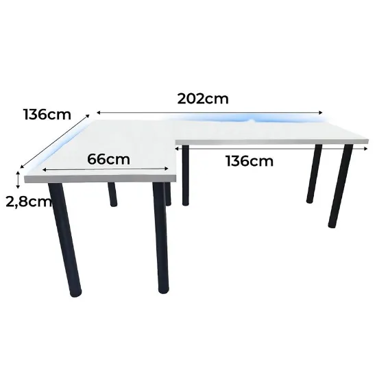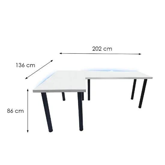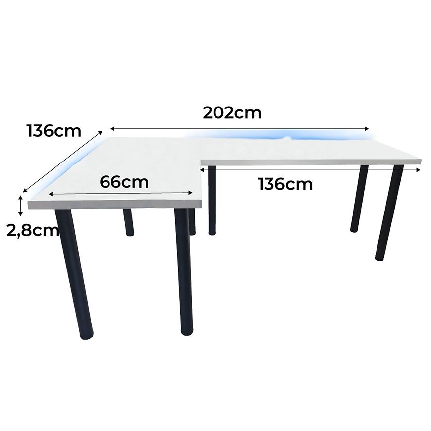 Biurko Gamingowe Narożne Top Białe 202x136x2.8 Model 1