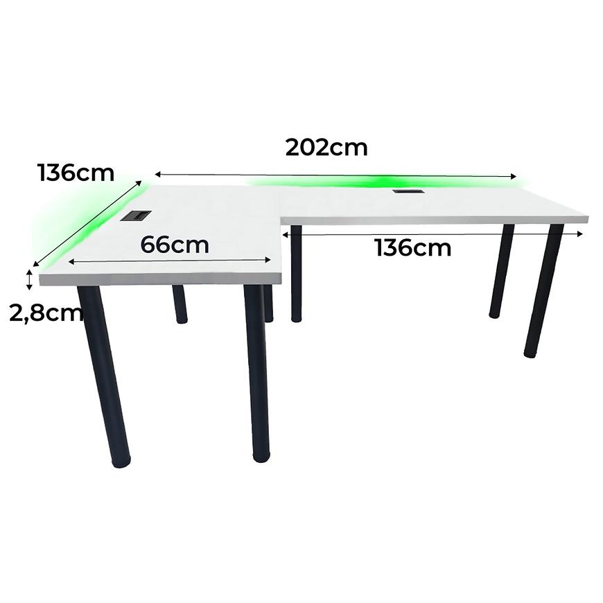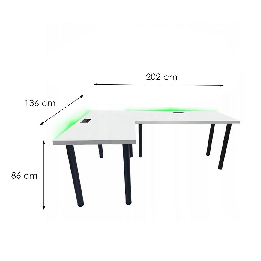 Biurko Gamingowe Narożne Top Białe 202x136x2.8 Model 2