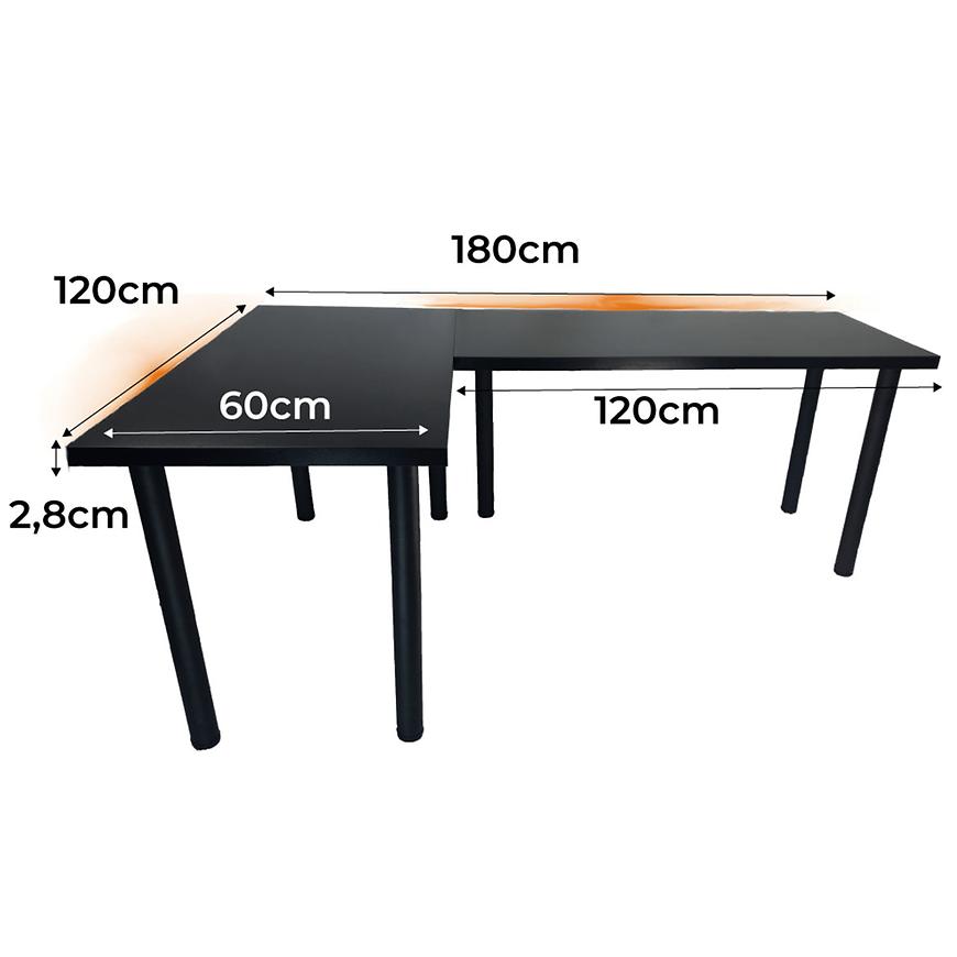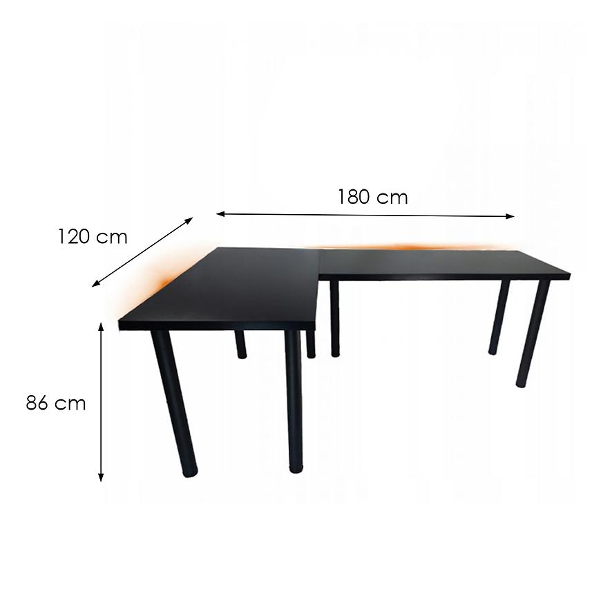 Biurko Gamingowe Narożne Top Czarne 180x120x2.8 Model 1