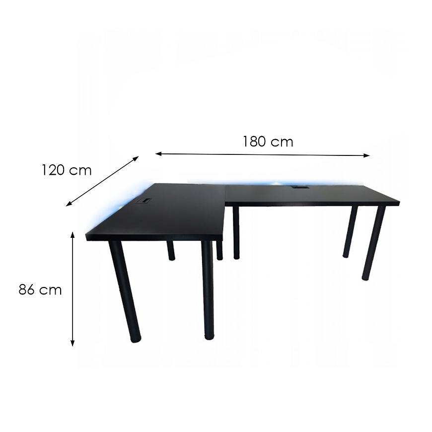 Biurko Gamingowe Narożne Top Czarne 180x120x2.8 Model 2