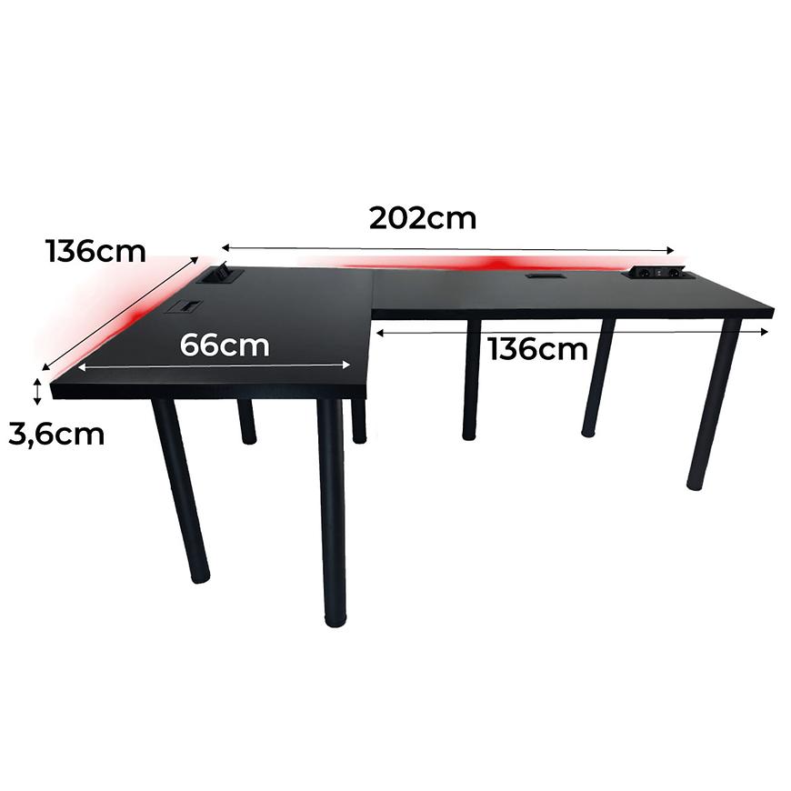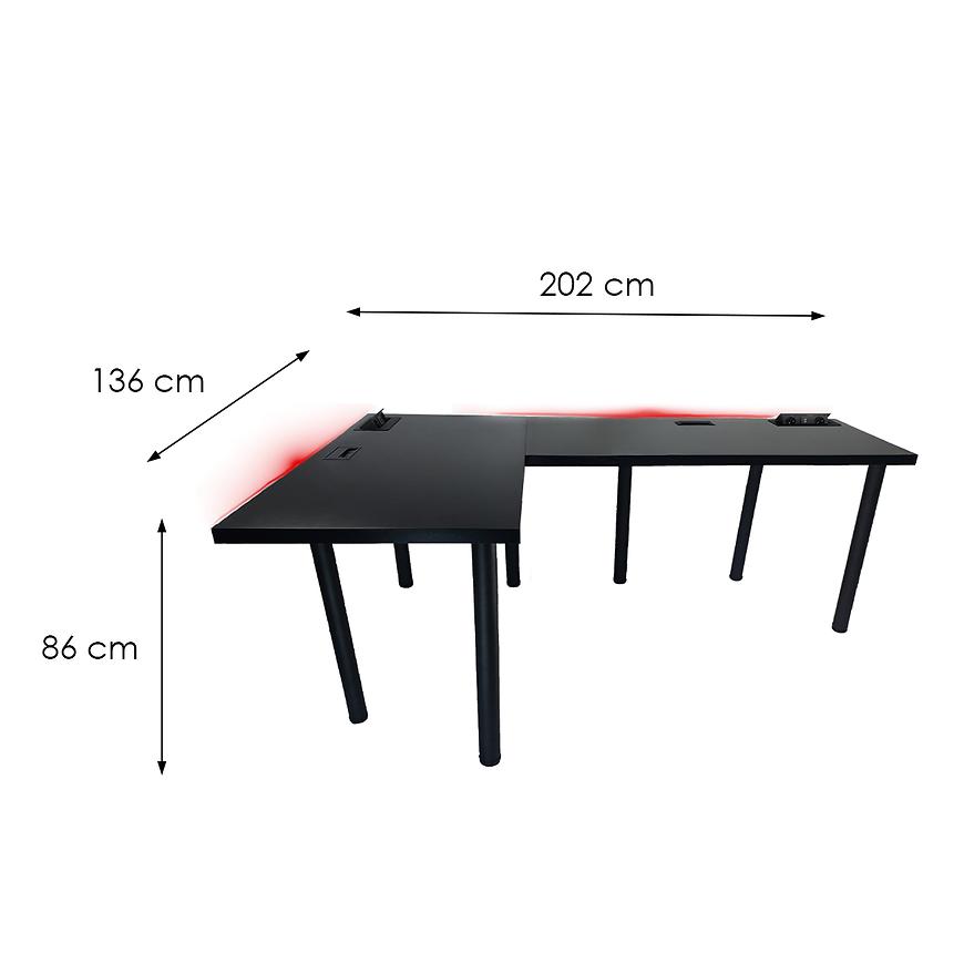 Biurko Gamingowe Narożne Top Czarne 202x136x3.6 Model 3