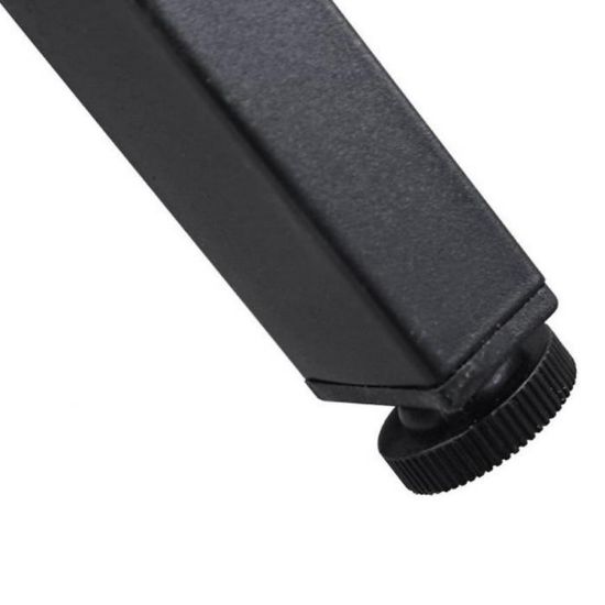 - Kolor i materiał: Solidna konstrukcja korpusu z połączenia metalu i płyty wiórowej laminowanej w matowym, czarnym wykończeniu, co nie tylko nadaje mu elegancji, ale również zwiększa jego odporność na ścieranie i zarysowania.
