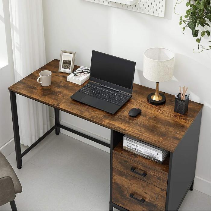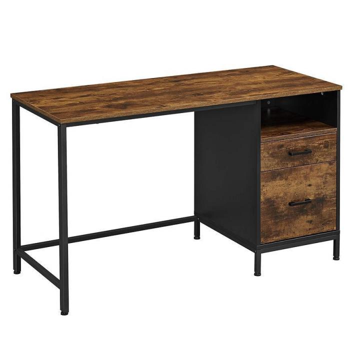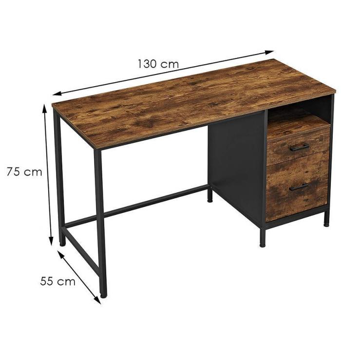Biurko Industrial to oryginalny mebel. Metalowa czarna rama z drewnopodobnym wybarwieniem przyciąga uwagę. Mebel posiada półkę oraz szuflady. Będzie pasował do wielu aranżacji.