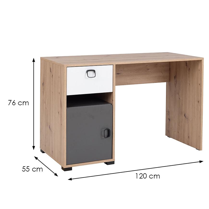 W skład kolekcji Kevin wchodzą różnorodne meble, które umożliwiają kompleksowe wyposażenie młodzieżowego pokoju. Biurko z szufladami do przechowywania to ergonomiczna przestrzeń do nauki i pracy, a komoda jednodrzwiowa z trzema szufladami zapewnia efektywne przechowywanie drobiazgów i ubrań.