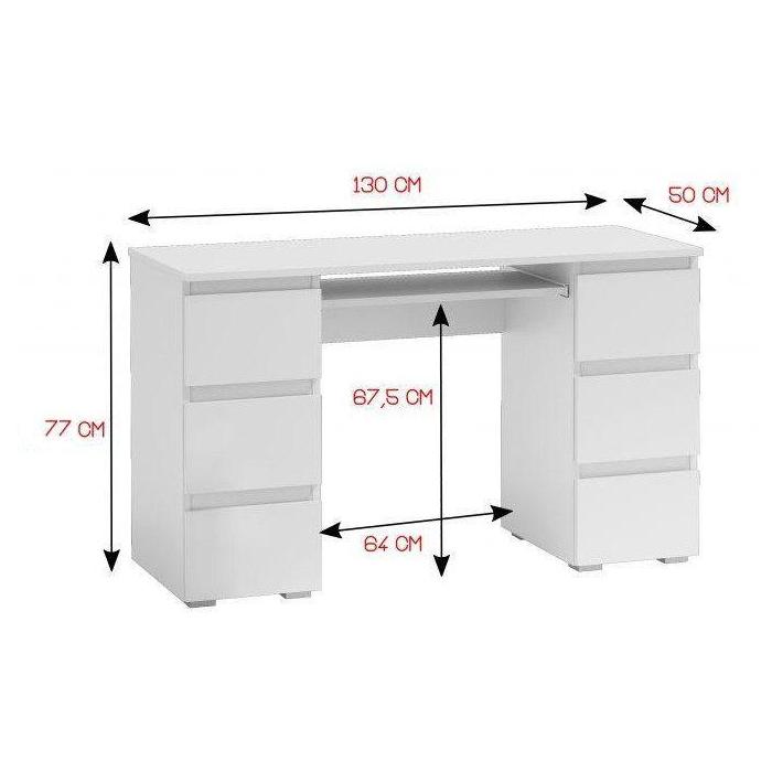 Nowoczesność i funkcjonalność - tak w skrócie można opisać biurko Krister. Mebel doskonale się sprawdzi jako przestrzeń do pracy dla osoby dorosłej jak i biurko młodzieżowe. Biurko Krister posiada aż sześć funkcjonalnych szuflad, które pomieszczą wiele przedmiotów potrzebnych do pracy. Mebel o gładkiej powierzchni, bez uchwytów i zbędnych zdobień, idealnie wpasowuje się w nowoczesne trendy. Biurko Krister będzie idealnym narzędziem pracy dla osób ceniących sobie porządek i dobrą organizację pracy.