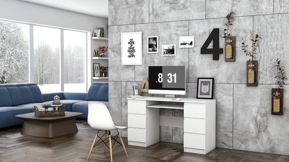 Nowoczesność i funkcjonalność - tak w skrócie można opisać biurko Krister. Mebel doskonale się sprawdzi jako przestrzeń do pracy dla osoby dorosłej jak i biurko młodzieżowe. Biurko Krister posiada aż sześć funkcjonalnych szuflad, które pomieszczą wiele przedmiotów potrzebnych do pracy. Niewielka konstrukcja dobrze sprawdzi się w ciasnych i niezbyt ustawnych wnętrzach. Biurko Krister nie zajmie wiele miejsca, a Ty zyskasz wygodną przestrzeń do realizacji kreatywnych pomysłów.