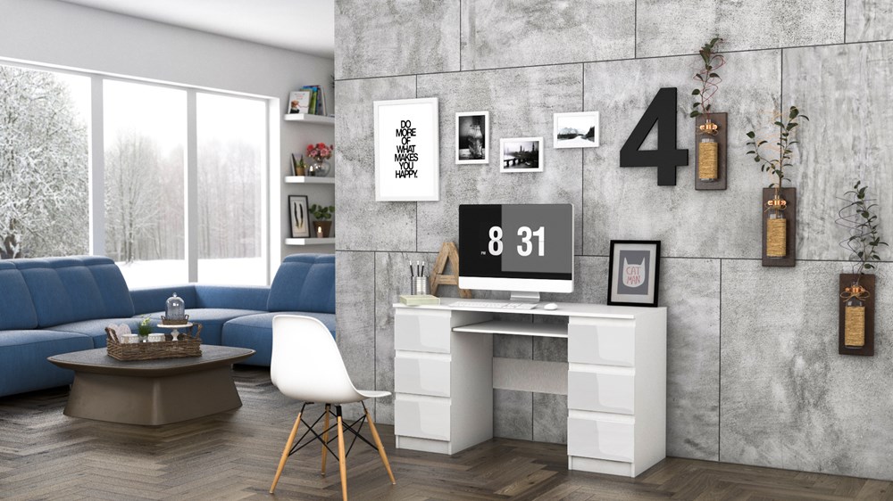 Nowoczesność i funkcjonalność - tak w skrócie można opisać biurko Krister. Mebel doskonale się sprawdzi jako przestrzeń do pracy dla osoby dorosłej jak i biurko młodzieżowe. Biurko Krister posiada aż sześć funkcjonalnych szuflad, które pomieszczą wiele przedmiotów potrzebnych do pracy. Niewielka konstrukcja dobrze sprawdzi się w ciasnych i niezbyt ustawnych wnętrzach. Biurko Krister nie zajmie wiele miejsca, a Ty zyskasz wygodną przestrzeń do realizacji kreatywnych pomysłów.