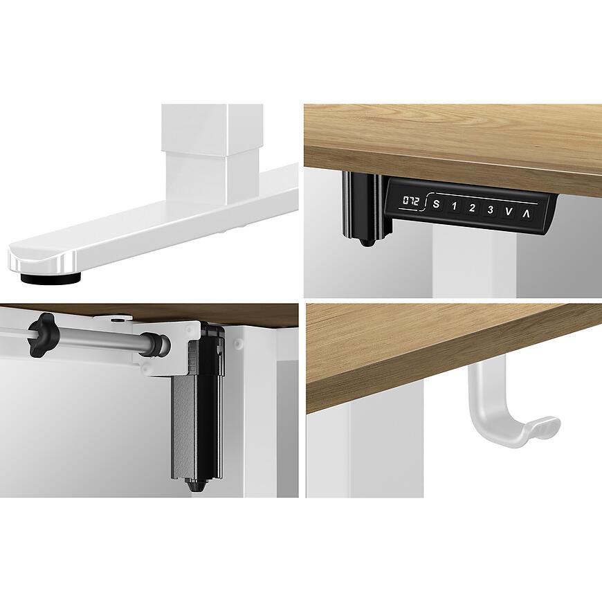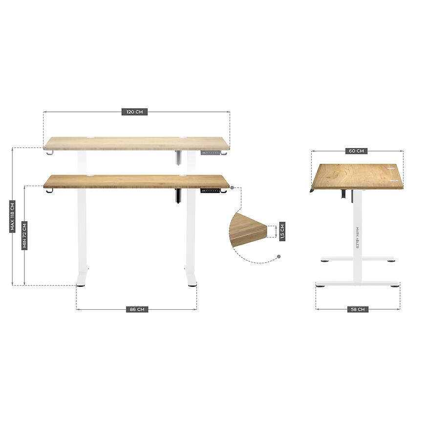 Poznaj biurko elektryczne Leader 7.0 craft – nowoczesne rozwiązanie łączące funkcjonalność i elegancję. Wyposażone w regulację wysokości 72–118 cm, pozwala na pracę zarówno w pozycji siedzącej, jak i stojącej, dbając o zdrowie i ergonomię. Solidna konstrukcja z metalowym korpusem w połysku oraz frontami z laminowanej płyty wiórowej w matowym wykończeniu gwarantuje trwałość i wyjątkowy design. Jasne drewnopodobne wybarwienie w połączeniu z bielą nadaje całości lekkości i nowoczesnego charakteru. Wybierz Leader 7.0 i stwórz komfortowe miejsce do pracy pełne stylu i wygody.