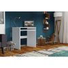 Jedną z praktycznych cech tego biurka jest wysuwana półka na klawiaturę, która pozwala na wygodne i ergonomiczne korzystanie z komputera. Dzięki temu użytkownik może swobodnie pracować, utrzymując przy tym odpowiednią postawę ciała i minimalizując napięcie w odcinku szyjnym i lędźwiowym kręgosłupa.