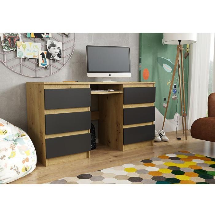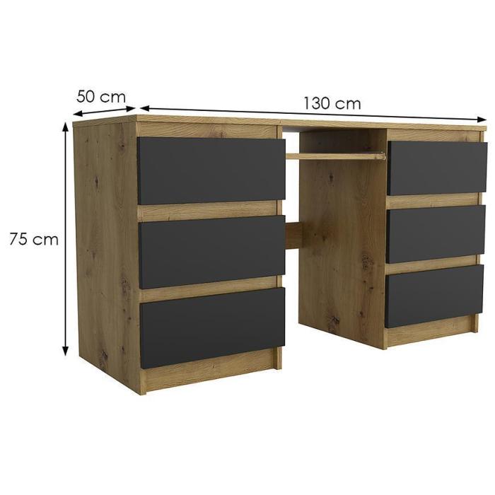 Wykonane z odpornej płyty wiórowej laminowanej w kolorze dąb artisan/czarny. Orientacja: uniwersalne.