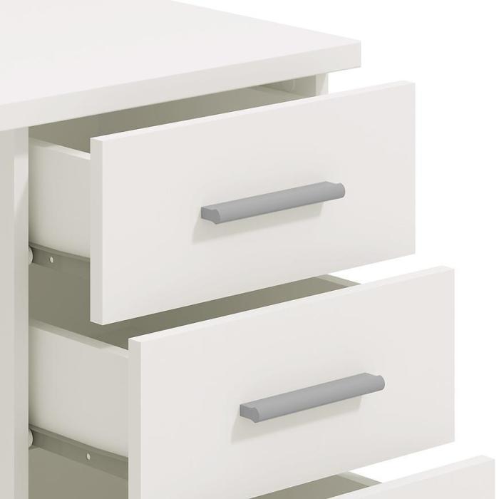 Moduł wykonany z odpornej płyty wiórowej laminowanej w kolorze białym.
