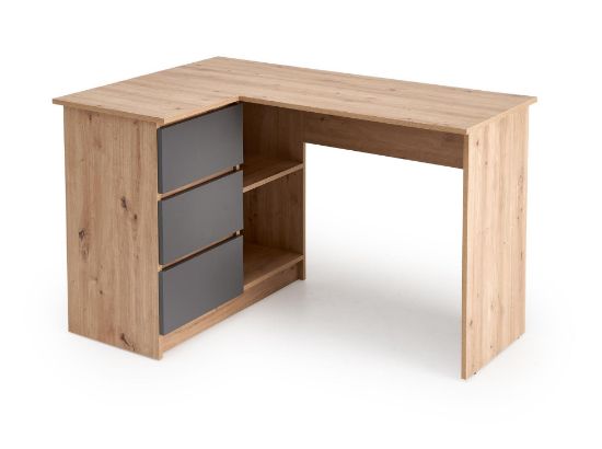 Biurko Linea w odcieniu dąb artisan z grafitowym stelażem łączy tradycyjny design z eleganckim kontrastem kolorów. Ciepły blat w naturalnym odcieniu drewna wprowadza przytulny akcent do wnętrza, a grafitowa podstawa nadaje meblowi nowoczesnego charakteru. Takie zestawienie sprawdzi się zarówno w domowym gabinecie, pokoju młodzieżowym, jak i nowoczesnej przestrzeni biurowej.