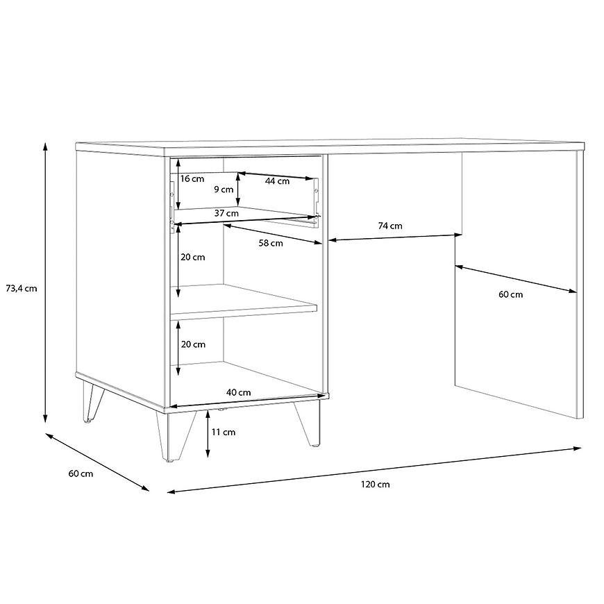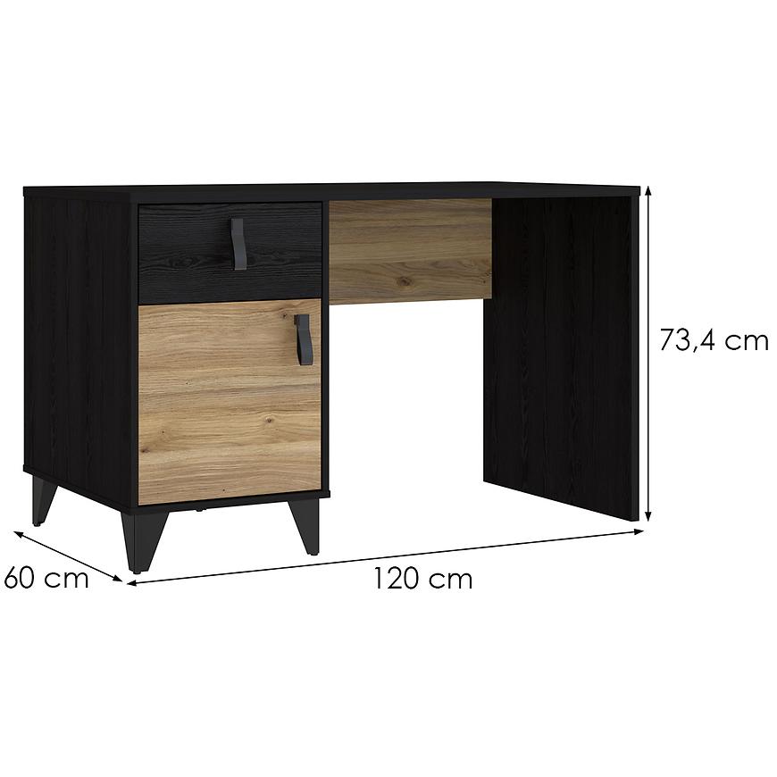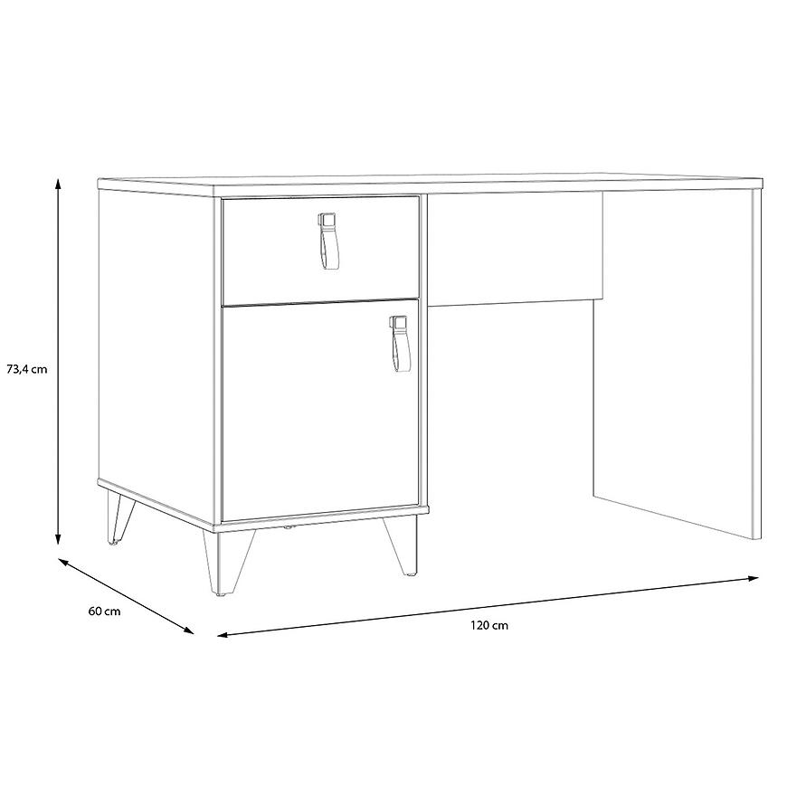 Biurko o wymiarach 120 cm szerokości, 73,4 cm wysokości i 60 cm głębokości, oferuje wystarczająco dużo miejsca do pracy lub nauki, zapewniając wygodne i ergonomiczne użytkowanie. Wykonane z wysokiej jakości płyty wiórowej laminowanej, biurko zapewnia solidną konstrukcję, która gwarantuje trwałość i wytrzymałość na długie lata. Kolor dąb Mauvella i dąb Cabezone oraz matowe wykończenie frontów i korpusu nadają biurku naturalny i przyjemny wygląd, który pasuje do wielu różnych aranżacji wnętrz.