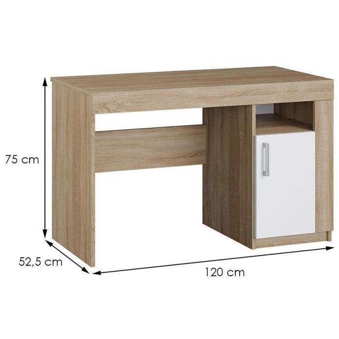 Meble zostały wykonane z płyty wiórowej laminowanej w kolorze dąb sonoma/biały. Dzięki swojej klasycznej kolorystyce, będą pasowały do każdego wnętrza. Nowoczesny styl mebli wpadnie do gustu każdemu, kto poszukuje eleganckiego, klasycznego, a zarazem nowoczesnego umeblowania. Orientacja biurka: prawostronna.