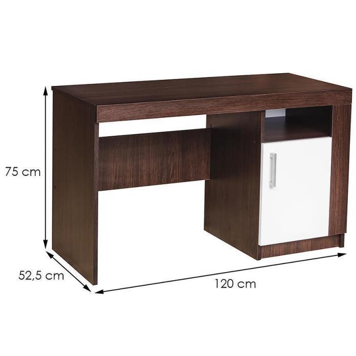 Meble zostały wykonane z płyty wiórowej laminowanej w kolorze wenge/biały. Dzięki swojej klasycznej kolorystyce, będą pasowały do każdego wnętrza. Nowoczesny styl mebli wpadnie do gustu każdemu, kto poszukuje eleganckiego, klasycznego, a zarazem nowoczesnego umeblowania. Orientacja biurka: prawostronna.