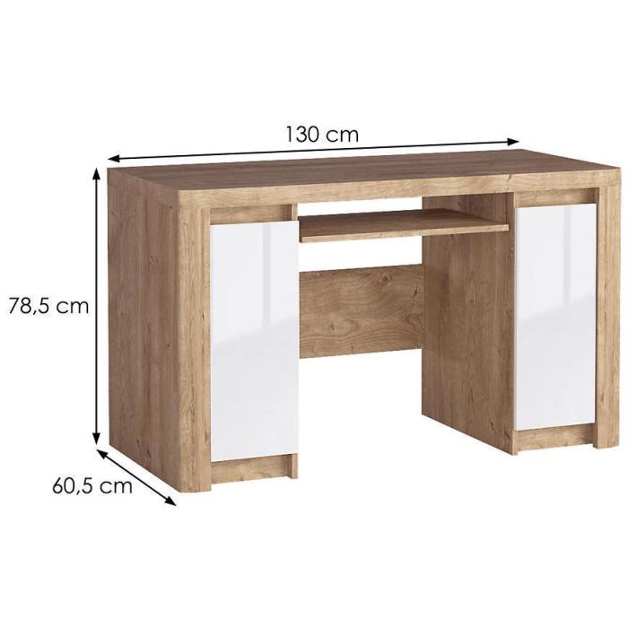 Nowoczesne i funkcjonalne biurko Livinio wykonane z płyty wiórowej laminowanej w kolorze dąb ribbeck/ biały połysk. Biurko jest stabilne i wytrzymałe, a dzięki swojemu wykończeniu posłuży przez wiele lat. Orientacja: uniwersalne.