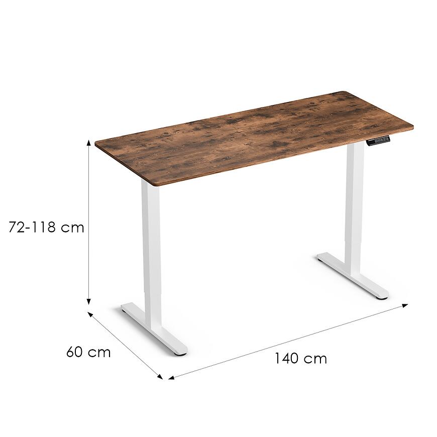Biurko Lv1717 Control Lite 140 w kolorze Biały/Rustykalny to nowoczesne i praktyczne biurko z kolekcji CONTROL LITE. Ma wymiary 140 cm szerokości, 60 cm głębokości, a wysokość regulowaną w zakresie 72–118 cm, co pozwala dopasować je do indywidualnych potrzeb. Korpus wykonano z laminowanej płyty wiórowej w białym kolorze, a blat w ciemnym, drewnopodobnym wybarwieniu o matowym wykończeniu. Biurko ma uniwersalną orientację, nie posiada drzwi ani szuflad, waży 21 kg i wymaga samodzielnego montażu.