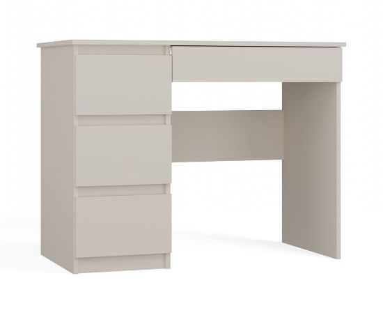 Biurko M lewe w kolorze kaszmir to połączenie funkcjonalności, nowoczesnego designu i bezpieczeństwa, stworzone z myślą o pokoju młodzieżowym lub dziecięcym. Jego korpus i front wykonane z płyty wiórowej laminowanej o grubości 16 mm nadają meblowi lekkości i nowoczesnego wyglądu.