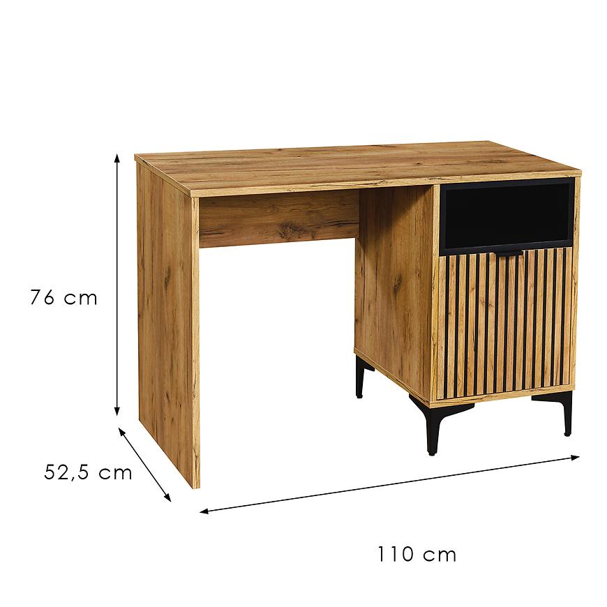 Biurko Margo 1D craft złoty to mebel, który łączy w sobie nowoczesny design z funkcjonalnością, co czyni go idealnym wyborem do każdego wnętrza, czy to w domowym biurze, czy w przestrzeni do nauki. Z wymiarami 110 cm szerokości, 76 cm wysokości i 52,5 cm głębokości, biurko oferuje wygodną przestrzeń roboczą, która pozwala na komfortowe wykonywanie codziennych zadań, a także sprawia, że aranżacja przestrzeni staje się przyjemnością.