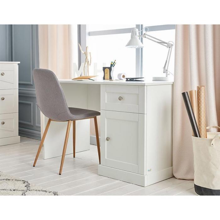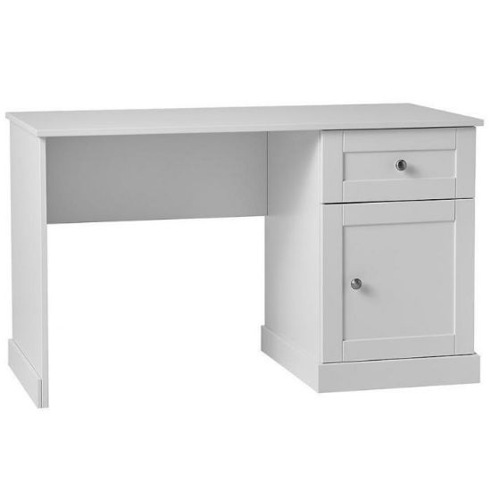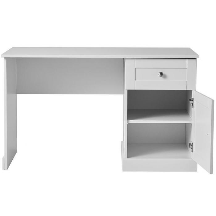 Biurko z 1 szufladą i drzwiami na wysokiej jakości prowadnicach i zawiasach z hamulcem i samodomykiem. Szafka z prawej strony (nie ma możliwości montażu z lewej). W szafce znajduje się szuflada oraz jedna półka wewnątrz z możłiwością regulacji w zakresie 0-64 mm. Materiały: malowana płyta MDF, elementy wewnętrzne – płyta laminowana.