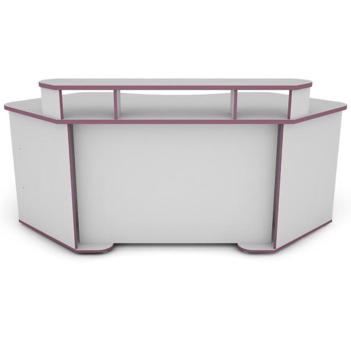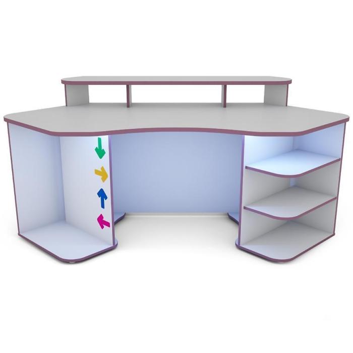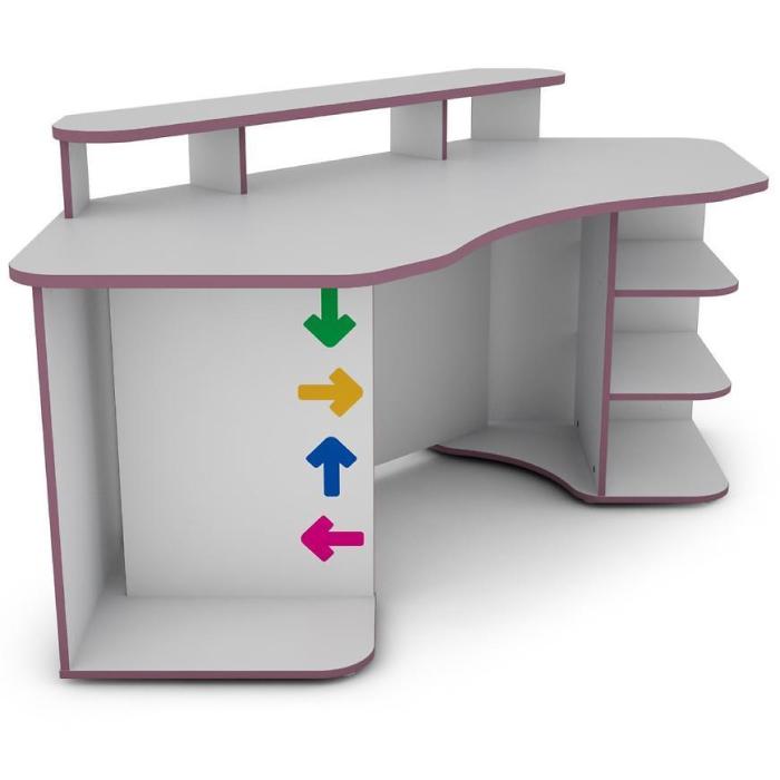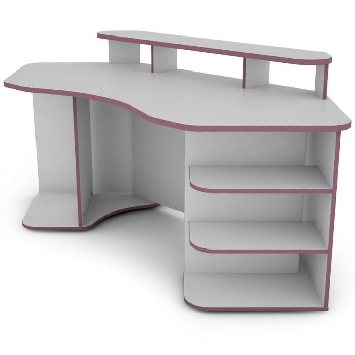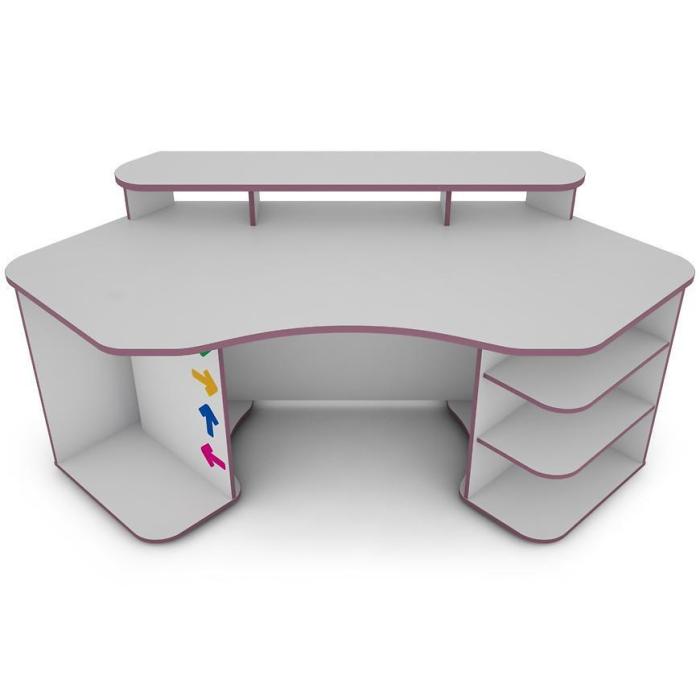 Nowoczesne i funkcjonalne biurko MATRIX wykonane z płyty wiórowej laminowanej z blatem w matowym wykończeniu i ciekawym biało-fioletowym wybarwieniu.