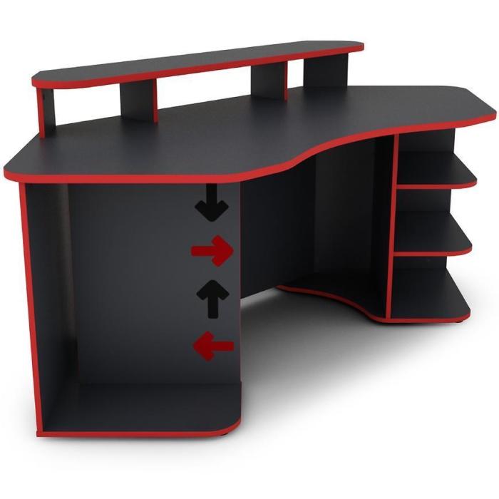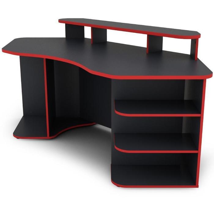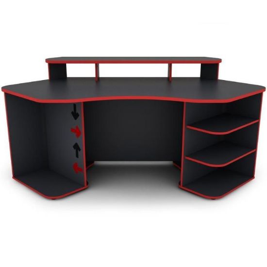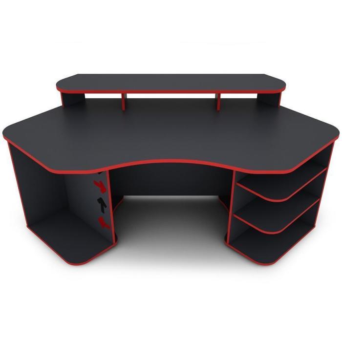 Nowoczesne i funkcjonalne biurko MATRIX wykonane z płyty wiórowej laminowanej z blatem w matowym wykończeniu i ciekawym grafitowo- czerwonym wybarwieniu.