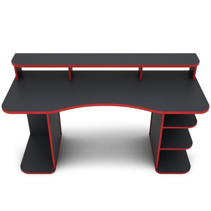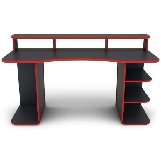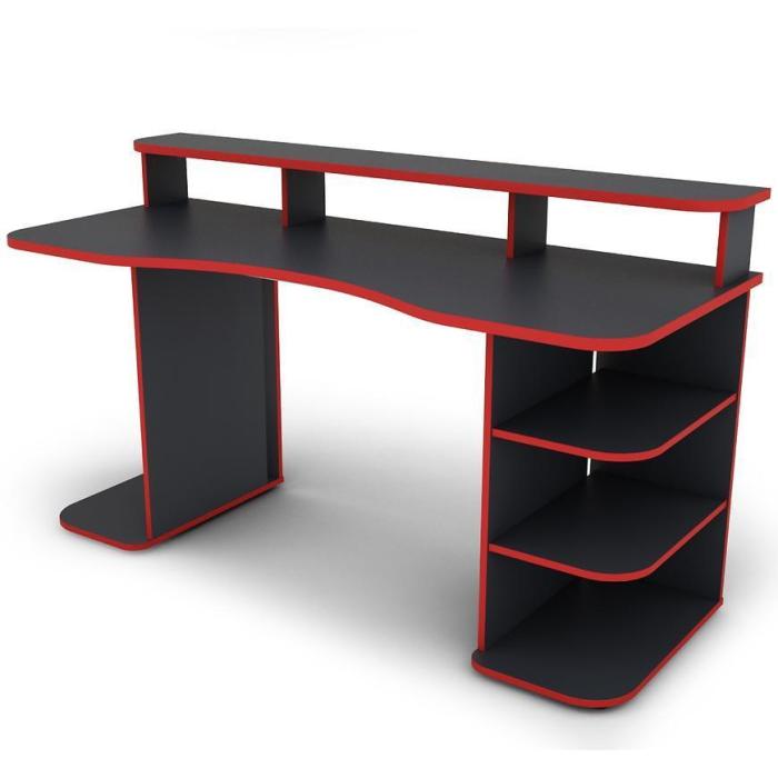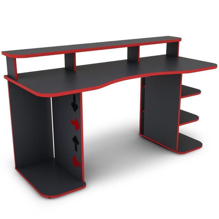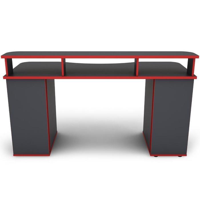Nowoczesne i funkcjonalne biurko MATRIX wykonane z płyty wiórowej laminowanej z blatem w matowym wykończeniu i ciekawym grafitowo- czerwonym wybarwieniu.