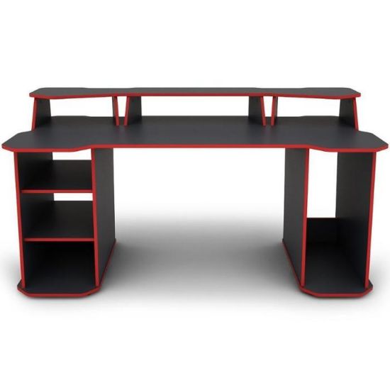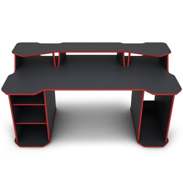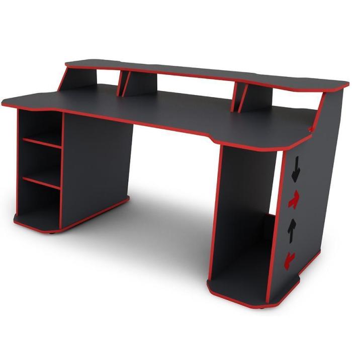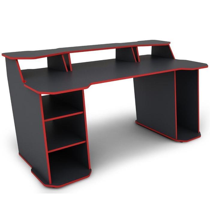 Nowoczesne i funkcjonalne biurko MATRIX wykonane z płyty wiórowej laminowanej z blatem w matowym wykończeniu i ciekawym grafitowo- czerwonym wybarwieniu.