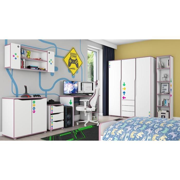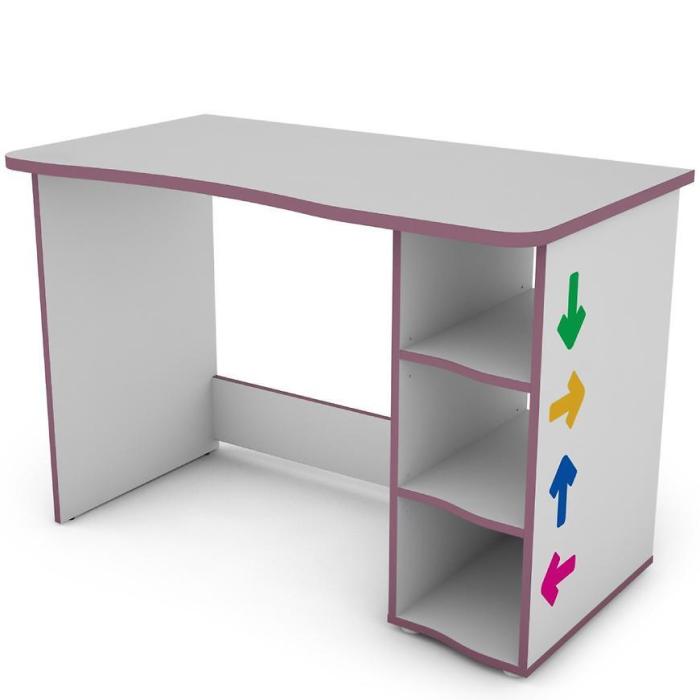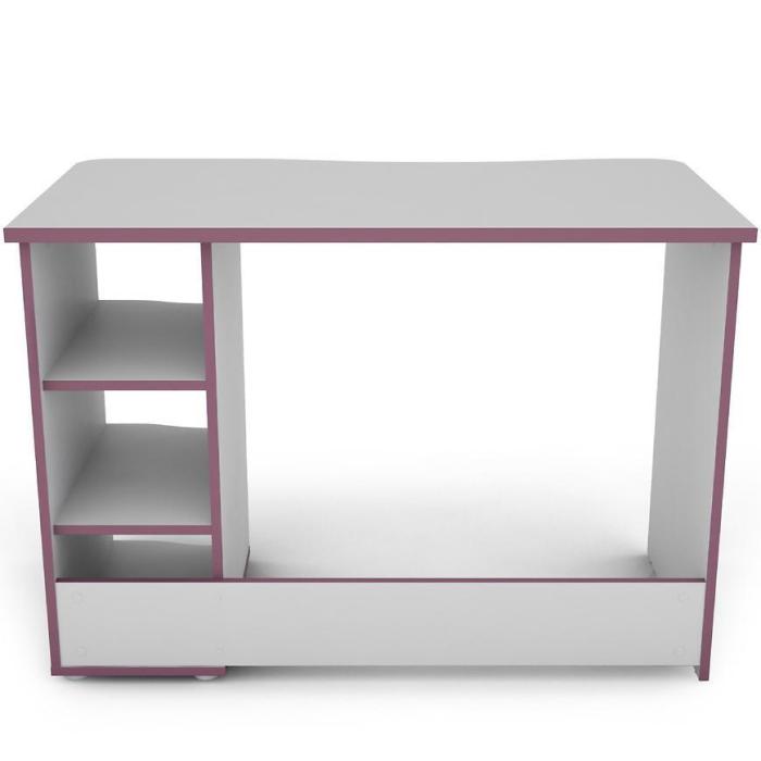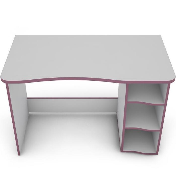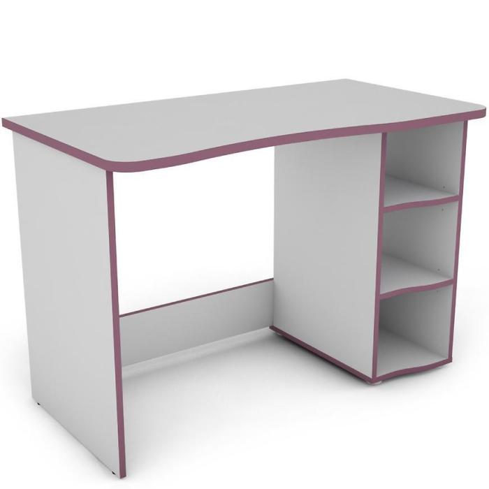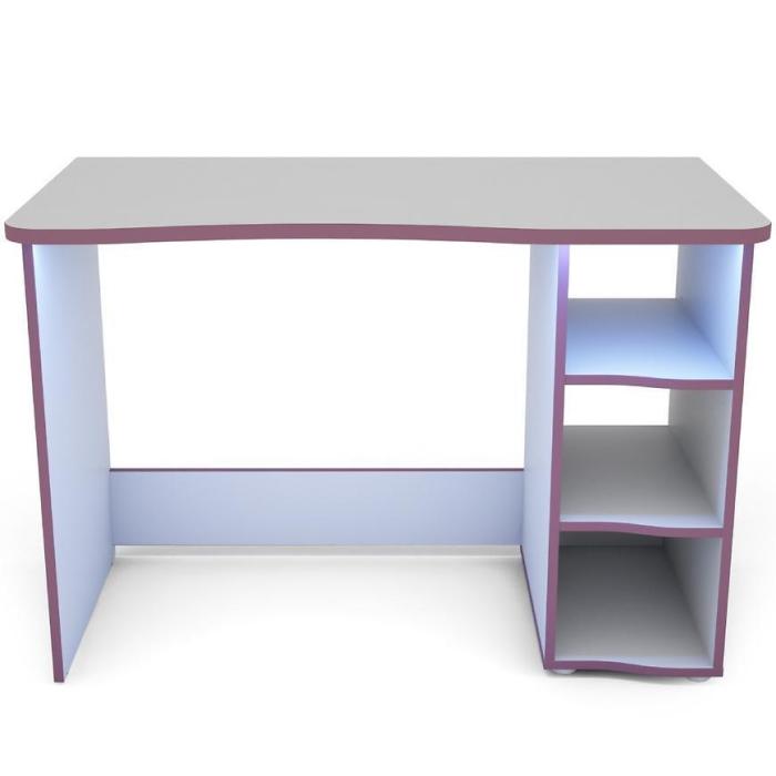 Nowoczesne i funkcjonalne biurko MATRIX wykonane z płyty wiórowej laminowanej z blatem w matowym wykończeniu i ciekawym biało-fioletowym wybarwieniu.